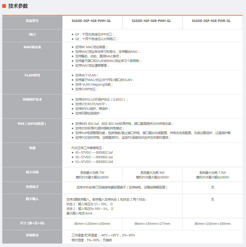 Gazelle S1020i-PWH/PWR-GL专为满足工业现场数据回传、工业领域自动化控制系统而设计,具备极佳的工业现场环境适应性(包含机械稳定性、气候环境适应性、电磁环境适应性等)、防护等级达到IP40、支持双冗余供电、低功耗无风扇散热技术、MTBF平均无故障工作时间可达35年,能在严苛的使用环境中长时间稳定运行。Gazelle S1020i-PWH/PWR-GL拥有业内领先的环网技术,支持多种工业级冗余环网协议,配合瑞斯康达NView综合网管系统可进行集群管理,达到全程无盲点网管。