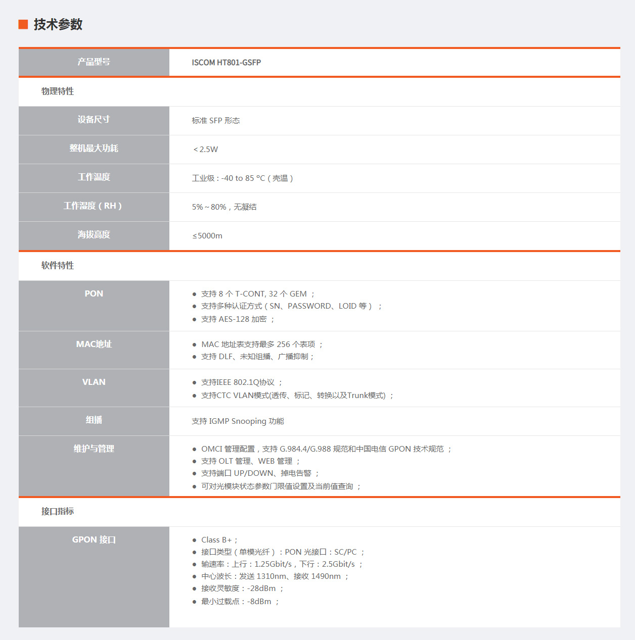 ◆ 符合 ITU-T G.984/G.988 及中国通信行业标准;