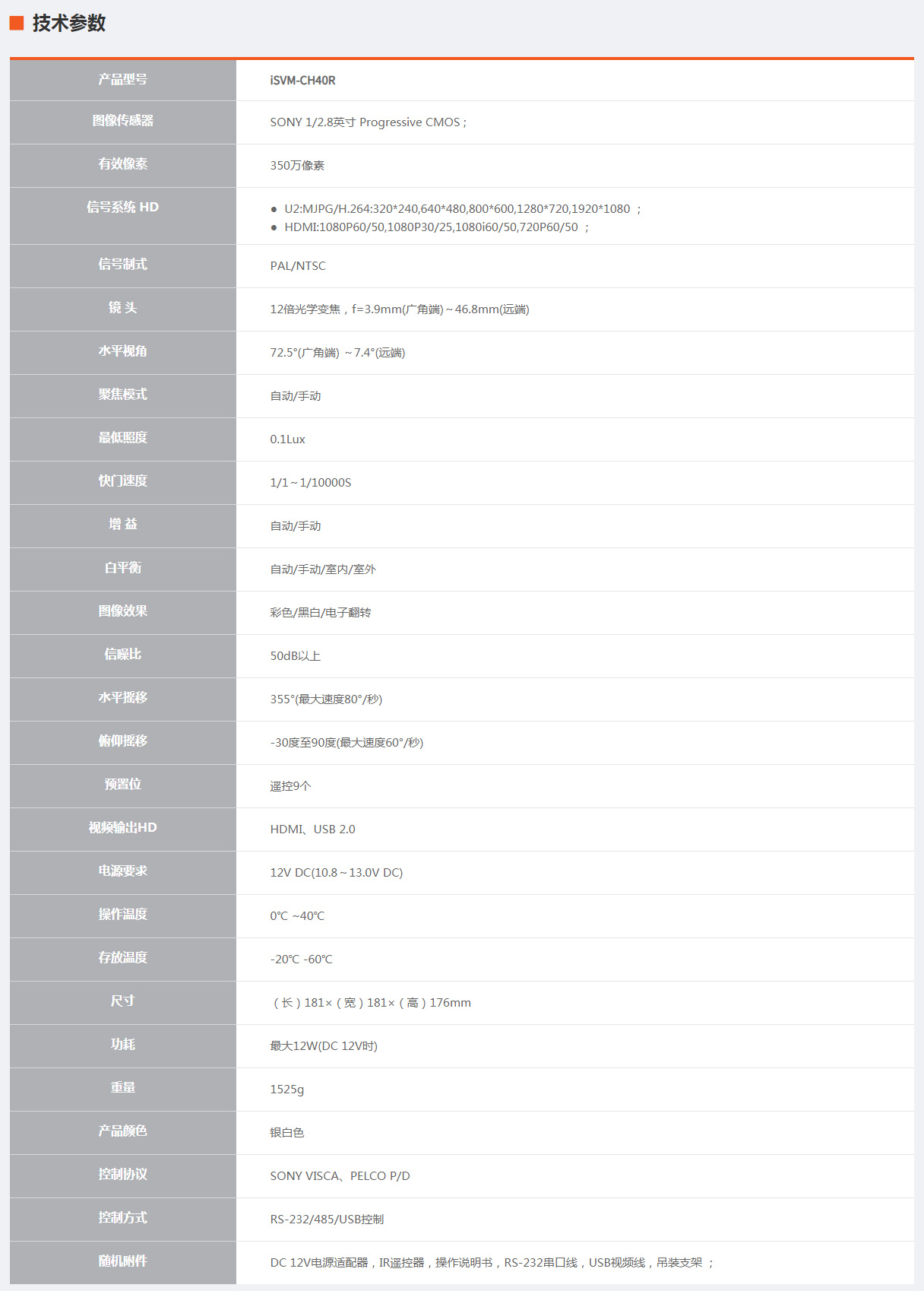 ◆ 兼容SONY VISCA协议以及PELCO P/D协议 ;
