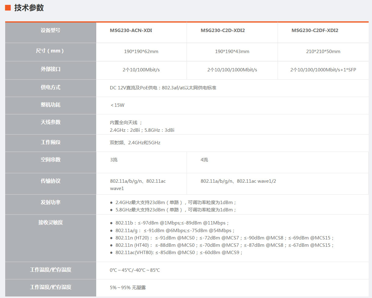 MSG230系列Wi-Fi5双频企业级室内吸顶无线接入设备,支持802.11a/b/g/n/ac 协议,以及802.11ac Wave2 ,双频可以同时工作在2.4GHz和5GHz 频段,提供更优秀的服务体验。内置全向高增益双频天线,能提供更大的无线覆盖范围和更可靠的接入稳定性。具有丰富的射频控制、移动访问、网络安全、多业务支持等功能,可同时提供多种接入模式。根据不同的应用场景,可灵活选择FIT或FAT工作模式,进行独立组网或配合瑞斯康达无线控制器提供基于零配置的高性能无线移动网络。适合用于医院、校园、酒店、企业等公共、办公区域等场景WIFI覆盖。