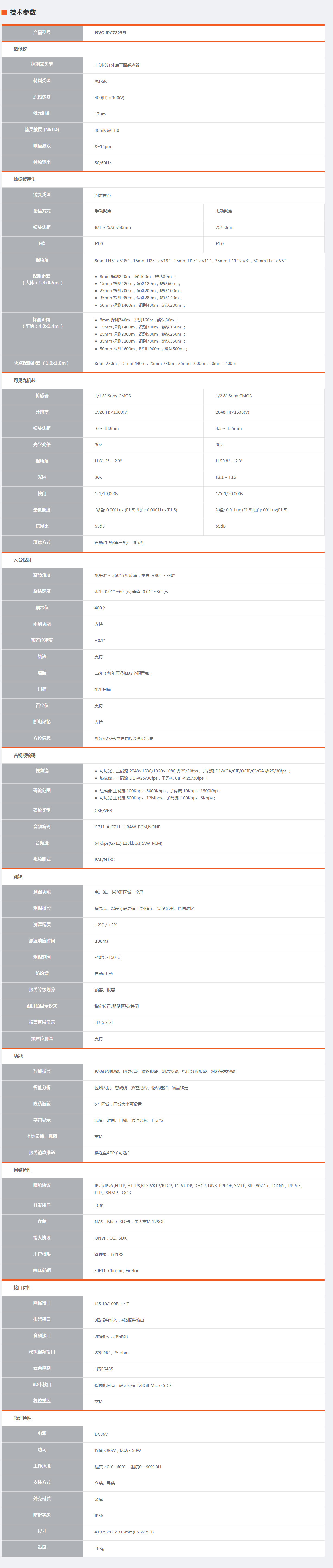 ◆ “测温型热像仪 + 200万/300万像素高清可见光网络机芯” 双光网络一体化云台摄像机 ;