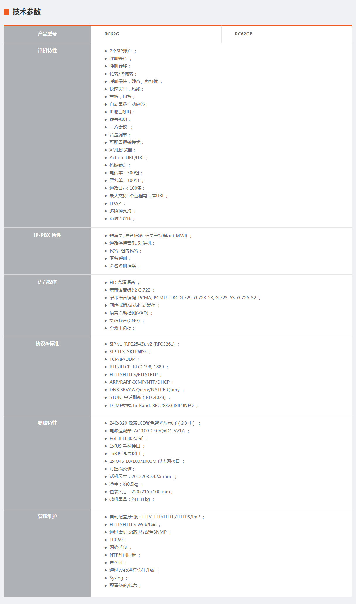 RC62G/RC62GP高清语音IP话机
