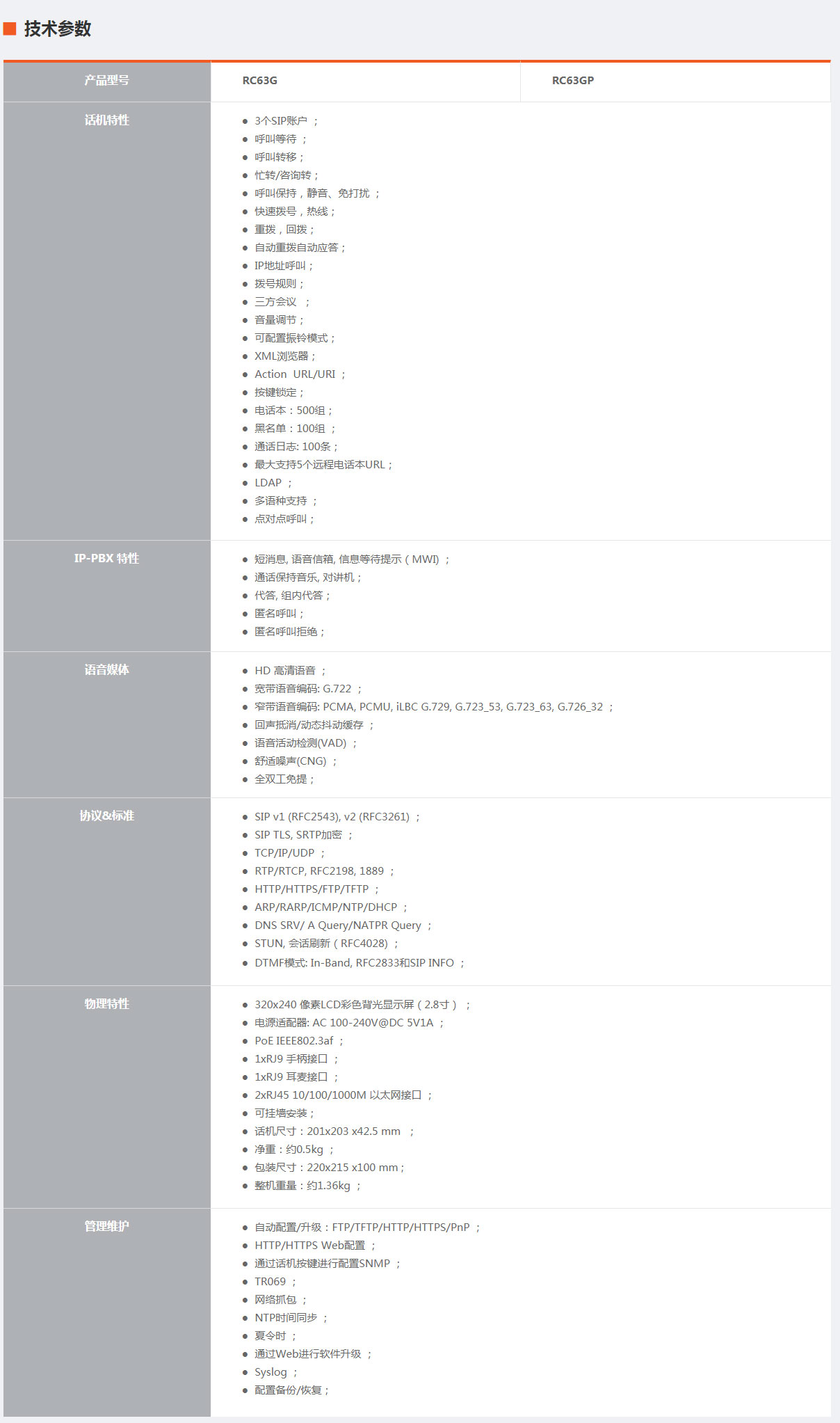 RC63G/RC63GP高清语音IP话机