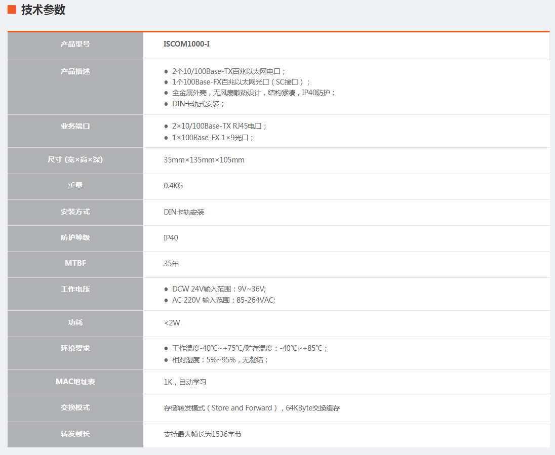 ISCOM1000-I非网管工业交换机专为适应工业领域中恶劣的环境而设计,能在严苛使用环境中长时间稳定运行。ISCOM1000-I工业交换机具备良好的工业现场环境适应性(包含机械稳定性、气候环境适应性、电磁环境适应性等)、体积小巧、防护等级达到IP40、低功耗无风扇散热技术、MTBF平均无故障工作时间可达35年,超长3年质保,可广泛应用于工业领域(平安城市、智能交通、视频监控、污水处理、发电风机等)。
