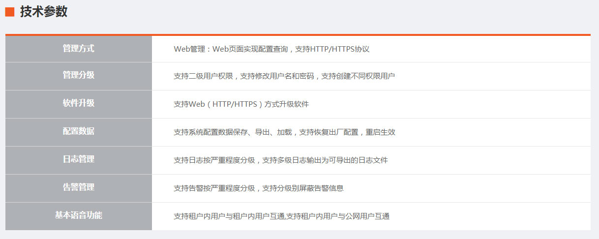 ◆ 语音功能多样化:除满足普通语音业务外,设备还支持多种业务特性,如传真业务、DTMF二次拨号(拨打分机)、用户呼叫限制、呼叫转接、呼叫识别、三方通话、热线电